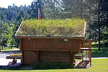The site includes an authentic log cabin museum that was built in 1876 by Edward Nielsen, a Norwegian immigrant gold prospector from Hole, Ringerike, Norway. There is also a stabbur, a grass-roofed house, that serves as the visitor center and gift shop.