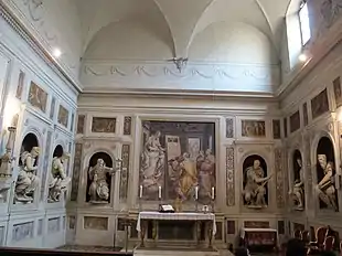 The Cappella di San Luca (Chapel of St Luke), also called dei Pittori is a chapel found in the cloisters of the convent of Santissima Annunziata in Florence, Italy. It was built to serve as the burial chapel for members of the Accademia del Disegno, and was donated by the Servites to the Academy in a document from 1565. It contains a collection of terracota statues from a number of prominent Florentine Mannerist sculptors.