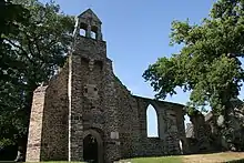 The ruins, which are mediaeval with some 17th-century additions,[1] are of an ancient leper hospital, which became in 1129 a priory of Marmoutier Abbey. In 1343, the plenipotentiaries of Philip VI of Valois and Edward III of England signed the Truce of Malestroit here.