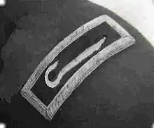 When Goldberg's request to wear the six-pointed star was rejected—based on the same fears the army had that a six-pointed star would be too similar to the five-pointed star worn by flag officers—he recommended the shepherd's crook as a universal symbol, a recommendation that met with opposition from many Christian chaplains.[6] However, the Navy did authorize Goldberg to wear that symbol himself, in place of the cross.[6][13] Goldberg wore this insignia until the end of World War II, when navy policy eventually changed to allow navy Jewish chaplains to wear the tablets and the star, the same insignia worn by Jewish chaplains in the army.[6] This change took place in 1941,[13] after only two Jewish chaplains (Goldberg and Harold Strauss) had worn the Shepherd's Crook insignia.[15]