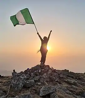 Chabbal Waadi (also known as Mountain of Death) is located in Nigeria and, at 2,419 m (7,936 ft), is the country's highest point.[2] It is located in Taraba State, near the border with Cameroon, on the edge of Gashaka Gumti Forest Reserve and Gashaka-Gumti National Park on the Mambilla Plateau.[3] It is a part of the Bamenda-Alantika-Mandara Mountain chain of Nigeria and Cameroon.[4]