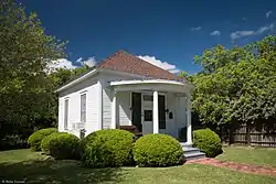 It was built in 1912 in a Colonial Revival style by J.W. Heartfield. The plan is nearly square, 20' x 24', with clapboard siding and corner beads. There is a hipped roof that is now asphalt, but was once shingled in cedar. The front elevation exhibits a semi-circular portico supported by two Doric columns capped with oversized capitals and two pilasters.