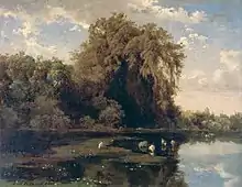 An 1875 painting, Ahuehuetes en Chapultepec, by José María Velasco Gómez depicting the ahuehuetes by the lake in Chapultepec. It's possible this is a view from Chapultepec Castle.[8]