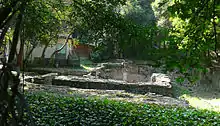 For Mexico City residents, the park is valued as a cultural and historic area as well as green space.[2] The area has vestiges showing human presence as far back as the Toltecs with a number ruins from the pre-Columbian through to the colonial period.[15] Archeological studies have unearthed and identified tombs associated with Teotihuacan, a Toltec altar on the summit of Chapultepec Hill, remains of a colonial era aqueduct, paths associated with Nezahualcoyotl, and an area where Aztec priests ingested peyote as part of religious rites.[15][2] One notable site is the Baths of Moctezuma, which was a systems of tanks, reservoirs, canals and waterfalls constructed by the Aztecs.[2] The Instituto Nacional de Antropología e Historia has the park, as well as the Castle of Chapultepec on the hill, listed as Mexican heritage sites. They submitted the area for consideration as a World Heritage Site in 2001.[19][20][21]