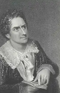 As his musings developed along these lines, Hazlitt continued to contribute miscellaneous articles to various periodicals.[9] In February 1816, he reviewed August Wilhelm Schlegel's Lectures on Dramatic Literature for the Edinburgh Review. The German critic Schlegel showed an appreciation for Shakespeare of a kind that no one in Hazlitt's country had yet demonstrated, and Hazlitt, sympathising with many of Schlegel's ideas, felt there was a place for a whole book that would provide appreciative criticism of all of Shakespeare's plays. Such a book would provide liberal quotations from the text, and focus on the characters and various qualities particular to each play; and he felt that he could write it.[10] His writing career was now moving in this direction (he had been contributing miscellaneous literary criticism to the Examiner and elsewhere during this period), he needed the money to support his family,[11] and his growing reputation as a drama critic enabled him to have his name appear on the title page (as a reviewer for periodicals, his contributions were anonymous, as was customary at the time).[8]