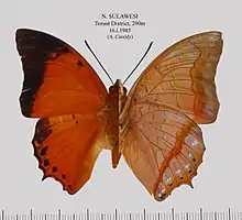 This article incorporates text from this source, which is in the public domain. - Etsuzo Tsukada Ed. Butterflies of the South East Asian islands / V, Nymphalidae (II) : Andaman I., the Malay Peninsula, Sumatra, Java, Borneo, Celebes, the Philippines, the Lesser Sundas, Tanimbar, etc. / ed. in collab. with well-known specialists by Etsuzo Tsukada ; Nymphalidae Tokyo : Azumino Butterflies Research Institute 1991.In Japanese