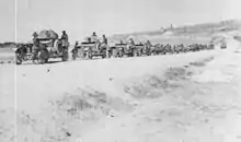 The 5th Cavalry Division and the armoured cars were organised into two columns. Column "A" consisted of the Major-General Henry Macandrew's division headquarters, all the armoured cars and the 15th (Imperial Service) Cavalry Brigade.[11] The 13th and 14th Cavalry Brigades formed Column "B."[13]