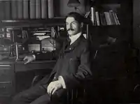 In January 1900, Baird met with Amos Alonzo Stagg in Ann Arbor and negotiated a two-year contract with rival, the University of Chicago, including a Thanksgiving game in Chicago.[14] Though Chicago would be playing at home in 1900, Baird required that Stagg agree to "an equal division of the gate receipts."[15] In May 1900, Baird lost his head football coach, Gustave Ferbert, to the Klondike Gold Rush. Ferbert left Ann Arbor to join "two other prominent Michigan football men" to prospect for gold in Alaska.[16] (Ferbert returned from Alaska in 1908 as a millionaire after striking gold, though these claims are debated by modern historians.[17][18][19]) Langdon "Biff" Lea was hired to replace Ferbert as coach for the 1900 football season. Lea had played at Princeton from 1892 to 1895 and was considered one of the greatest football players in Princeton's history.[20] The 1900 team finished in 5th place in the Western Conference with a 7–2–1 record, losing to rival Chicago and to Iowa.