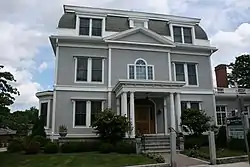 The Allen House is set on the north side of Elm Street, at its corner with West Street, several blocks west of Worcester's Main Street and downtown. The three story mansard-roofed building is basically square in plan, with an ell projecting from its rear, and a central pavilion slightly projecting from its front facade. The pavilion rises two stories, and is topped by a pedimented gable. The main roof cornice is studded with modillions, as is that of the porch that shelters the front entry.[2]
