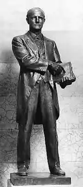 In the 1933 textbook The Story of North Carolina, Aycock is described as "one of the best friends that colored people had."[25] For most of the 20th century, Aycock was characterized by state historians and politicians as an admirable figure, reflected in the choice to have a statue of him as one of the two submitted by the state to the National Statuary Hall Collection. In recent years, that viewpoint has been challenged:[3]