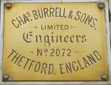 Charles Burrell & Sons were builders of steam traction engines, agricultural machinery, steam lorries and steam tram engines. The company were based in Thetford, Norfolk and operated from the St Nicholas works on Minstergate and St Nicholas Street, some of which survives today.