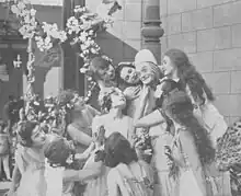 Craig as Sugar, surrounded by a bevy of beauties, in The Blue Bird, a 1918 film of a Maurice Maeterlinck play.
