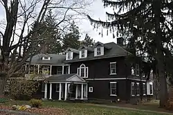 The Charles D. Lewis House is a historic house in Sherborn, Massachusetts. It is a two-story wood-frame structure, set on a brick and rubblestone foundation, and exhibits informal Shingle style massing with elements of formal Colonial Revival detail. The house is built in a wide V-shape opening to the north, its main entrance south-facing with porches, but, within the angled facades to the north, a circular driveway and port-cochere entry, supported by Tuscan columns. It was built as a gentleman's farm and one of the town's earliest summer residences circa 1905, by Charles D. Lewis, a businessman whose family owned Lewis Wharf in Boston.[2]