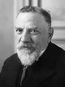 Dumont was made Minister of Finance in the cabinet of Louis Barthou formed on 22 March 1913.[1] In October–November 1913 Dumont, Barthou, Foreign Affairs minister Stéphen Pichon and General Joseph Joffre were involved in finalizing an agreement with the Russian premier Count Vladimir Kokovtsov for a railway loan. At the last moment the negotiations stalled when Joffre said the protocol must have a supplement that said the railways would be built to the plan agreed by the Chiefs of the General Staffs of France and Russia, which the Tsar had approved at the start of September.[6] Kokovtsov did not know of this plan, and was unable to agree.[7] With a looming threat of war, Dumont lost office on 2 December 1913 over a dispute about whether pensions should be immune when a loan to the Treasury was required in the event of an emergency.[1]