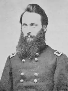 Born in Cincinnati, Ohio, Brown attended the common schools and Greenfield Academy, He was graduated from Miami University, Oxford, Ohio, in 1854. He went south and, while serving as tutor at Baton Rouge, Louisiana, studied law. He was admitted to the bar in 1859 and commenced practice in Chillicothe, Ohio. He served as prosecuting attorney of Ross County in 1859 and 1860. In the first year of the American Civil War, Brown enlisted as a private in Company B, Sixty-third Regiment, Ohio Volunteers, September 2, 1861. He was promptly commissioned as a captain on October 23, 1861. Brown lost his left leg on July 22, 1864 in the Atlanta Campaign.[1] He was promoted through the ranks to colonel June 6, 1865. Brown was mustered out of the volunteers on July 8, 1865.[2] In recognition of Brown's service and sacrifice in the Atlanta Campaign, on January 13, 1866, President Andrew Johnson nominated him for appointment to the grade of brevet brigadier general to rank from March 13, 1865, and the U.S. Senate confirmed the appointment on March 12, 1866.[2][3]