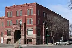 The Charles Gurney Hotel is a historic three-story building in Yankton, South Dakota. Replacing the original St. Charles Hotel (constructed in 1870 by J.W.C. Morrison of local cottonwood lumber), the present building was built in 1891 with brick and Sioux Falls granite. It was designed in the Richardsonian Romanesque Revival style by architect J.H. Coxhead.[2] It was originally known as the Hotel Pierce, and it was built where the 1870 St. Charles Hotel once stood.[2] It was later renamed the Portland Hotel by its new owner, Alfred Crebbin, presumably in recognition of the importance of the local manufacture of Portland cement (see Western Portland Cement plant).[2] In the 1940s, it was acquired and remodelled by Charles Gurney, and it became known as the Charles Gurney Hotel.[2] It was purchased by Elza Anderson in 1962.[2] It has been listed on the National Register of Historic Places since August 3, 1979.[1]