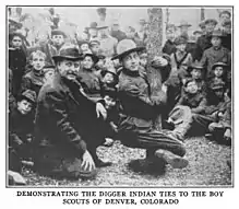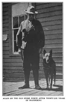After discovering an 1867 treatise by John Tyndall that a small and regulated flame could be extinguished by a sound of the appropriate frequency, he claimed to have developed the technique to do this with his voice.[5] He was also a skilled craftsman and an inventor. In 1924 he designed and patented a mechanized fruit and nut picker.[9] He also designed a movable fireplace. Every time he visited his California home, he found that the forests were dwindling and along with his friends who included John Muir and John Burroughs he considered ways to highlight the loss. He "kept thinking and thinking through many years how to take the forest out to the world ...[since] the world could not come out to the forests". After World War I he saw a powerful truck, a Nash Quad and decided to modify it by adding a body made from a 7 metre section of a redwood and carving it out with a bed, a toilet and a kitchen with cupboards. The wood weighed 3 tons and could not be lifted. He then dug a tunnel under the wood and drove the Nash Quad under it and then had the log body lowered onto it. He called his vehicle the "Travel Log" and drove it around at a maximum speed of about 8 km/hour. In later years he traveled in a lighter vehicle that he called the "Bird Wing" - something that he claimed would start when he whistled to it.[5] He traveled at various times to the West Indies and Fiji where he observed a fire-walking ceremony. He also traveled to Paris where he met Auguste Rodin.[10]