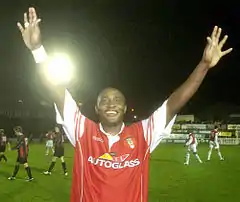 ![]() Mbabazi celebrates St Patrick's Athletic's FAI Cup semi-final win in 2003 | |||