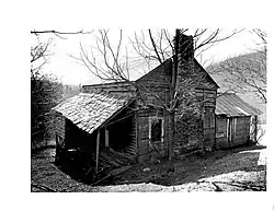 The Charles Noden George House is a historic house in rural Graham County, North Carolina. It is located on the south side of a private road, 0.4 miles (0.64 km) west of SR 1200 and 1 mile (1.6 km) north of United States Route 129, near Tulula Creek. It is a single-pen log structure built c. 1853, which faces east at the top of a 20-acre (8.1 ha) pasture and overgrown orchard. The logs are poplar, and are joined by half-dovetail notches. A fieldstone chimney rises from the uphill side of the structure, and there is a kitchen ell and a wraparound porch on the south and west sides, added c. 1900. It was built by a veteran of the War of 1812 during the second major wave of development in western North Carolina.[2]