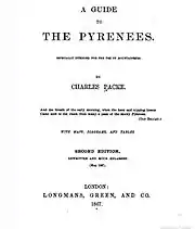 In 1862 Packe's A Guide to the Pyrenees (with the subtitle Especially Intended for the Use of Mountaineers) was first published;[1] the second edition was brought out by the London firm of Longmans, Green, and Co.[2]