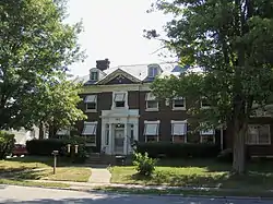 The Simpson house is a fine Davenport example of the renewed interest that the United States had in Colonial Revival architecture around the turn of the 20th-century.[3] This particular house was designed in Georgian Revival idiom of the Colonial style. The two-story brick house features a high hipped roof with curved dormers, a six-bay front, a porte-cochere, and a full height entrance. The single-door entrance is framed by columns in the Doric order, a semicircular pediment, and sidelights.