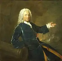Stewart apparently became a supporter of John Campbell, 2nd Duke of Argyll, and was elected to represent Malmesbury on his interest, on 25 January 1723.[2] He represented Malmesbury until 1727, and though Sir Charles Wager expected that Argyll would arrange for Stewart to be elected to represent Portsmouth in 1732, this did not happen.[2] Stewart's next opportunity to distinguish himself at sea came in late 1729, towards the end of the Anglo-Spanish War. News arrived in England that Edward St. Lo, commander in chief at the Jamaica Station during the Blockade of Porto Bello, had died while in command.[4] Stewart was promoted to rear-admiral of the blue on 9 December 1729 and set out to take up the command in Lo's stead,[5] flying his flag aboard HMS Lion.[4]