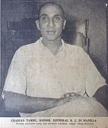 According to various literacies, Charles Tambu was born in 1907 in British Ceylon (today Sri Lanka). Charles Tambu was of Tamil descent. The arrival of Charles Tambu went to the Dutch East Indies because he joined his father and mother who migrated in search of a better life.[2] Although he is not a native Indonesian, he has defended the name of Indonesia in various international forums.