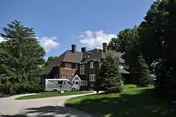 The Power House stands south of downtown Pittsfield on the east side of South Street (United States Route 20), on more than 11 acres (4.5 ha) just north of the Pittsfield Country Club. It is a rambling 2+1⁄2-story brick structure, set on a granite foundation that is fully exposed on the eastern side due to the sloping lot. It is roughly L-shaped, with a landscaped circular drive providing access to the house at the crook of the L. Its exterior is characterized by a variety of dormers, projecting and recessed sections, and varying window sizes and shapes. The interior has Federal style fireplace mantels, and includes a basement-level billiard room with a quarry tile floor. A garage is attached, and there is a secondary automobile barn on the property.[2]