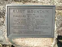 Eliot House, one of the seven original residential houses for undergraduates at the college, was named in honor of Eliot and opened in 1931.[36] Charles W. Eliot Middle School in Altadena, California, Eliot Elementary School in Tulsa, Oklahoma, Charles William Eliot Junior High School (now Eliot-Hine Middle School) in Washington, DC were named in his honor. In 1940 the United States Postal Service issued a stamp in Eliot's honor as part of their Famous Americans Issue.[37] Asteroid (5202) Charleseliot is named in his honor. [38] Eliot Mountain was named in honor of the lifelong academic who summered on Mount Desert Island, Maine, and was a key figure in the creation of Acadia National Park.[39][40][41]