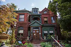 Charles and Joseph Raymond Houses consists of two historic homes located at Middletown, Dauphin County, Pennsylvania. They are two irregularly shaped brick and stone mansions in the Queen Anne style. They were built across the street from one another by two brothers, Charles and Joseph Raymond. The Charles Raymond House was built in 1891, and has a rusticated stone first story and a second story of brick. It features a variety of roof shapes and four articulated brick chimneys. The Joseph Raymond House was built in 1889, and has a rusticated stone first story and a second story of brick. It features a circular verandah and a square corner tower with an irregular pyramidal roof. It also has a large circular tower with a conical roof and a second floor balcony.[2]