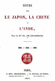 Baron Charles Gustave Martin de Chassiron (1818-1871) was a French diplomat of the 19th century. He travelled to China and Japan as one of the two Attachés of the French Embassy under Baron Gros, with the title of "Detaché extraordinaire en Chine et au Japon" from 1858 to 1860,[1] together with Marquis Alfred de Moges.