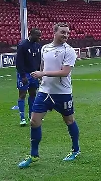 ![]() Lee (right) warming up for Gillingham in 2014 | |||