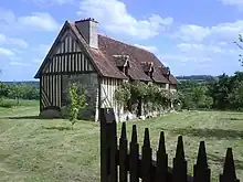 Born in Saint-Saturnin-des-Ligneries, a hamlet in the commune of Écorches (Orne), in Normandy,[2] Charlotte Corday was a member of a minor aristocratic family. She was a fifth-generation descendant of the dramatist Pierre Corneille. Her parents were cousins.[3]