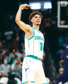 On November 18, 2020, the Hornets selected LaMelo Ball with the third overall pick.[123] The Hornets also drafted Vernon Carey Jr. and Grant Riller in the second round of the 2020 NBA draft.[124] On November 29, 2020, the Hornets would acquire Gordon Hayward in a sign-and-trade deal with the Boston Celtics.[125] The Hornets finished the 2020–21 season 10th in the East with a 33–39 overall record.[126] On June 16, 2021, Ball was named 2020–21 NBA Rookie of the Year, becoming the third player in franchise history to win the award.[127]