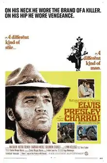 Charro! is a 1969 American Western film starring Elvis Presley, shot on location at Apacheland Movie Ranch and Old Tucson Studios in Arizona. This was Presley's only film in which he did not sing on-screen; the film featured no songs at all other than the main title theme, which was played over the opening credits.[3] It was also the only movie in which Presley wore a beard.[3] The film was novelized by Harry Whittington.[4][5]