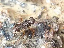 Chartoscirta elegantula is a Palearctic shore bug widespread in marshes or at the margins of rivers and lakes. Adult length is 3.5-4.0 mm. It is an agile ambush predator of small invertebrates on the ground or in peat moss. The adult animals hibernate often far from their summer habitats in dry material on the ground in moss or dry leaf litter.