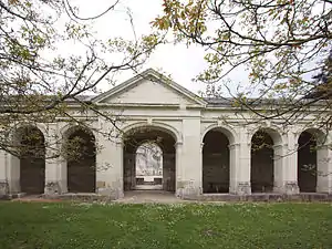 - The rectangular grand cloister - a characteristic architectural element of Carthusian monasteries - whose reconstruction had begun two years before the start of the French Revolution under the direction of Touraine architect Jean-Bernard-Abraham Jacquemin.[16] is badly damaged. Little remains of the west wing. On the walls of grand cloister are still visible several windows that allowed the serving of meals, taken in their cells by hermit monks.