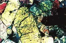 ![]() Thin section of Chassigny under cross-polarized light (JPL) | |