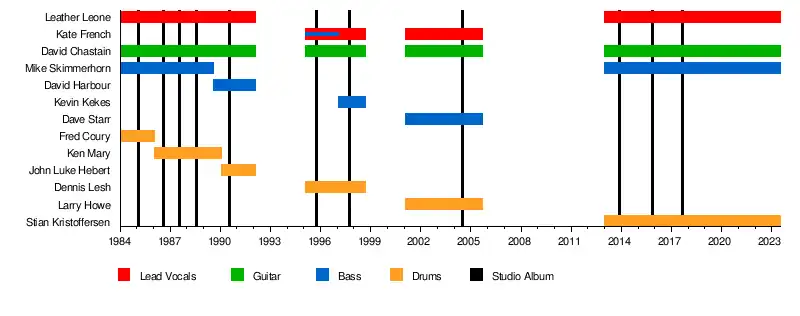 - Leather Leone – vocals (1984–1992, 2013–present)