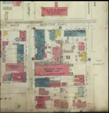The plot where the hotel now stands has a history dating back to the late 19th century. Despite the opening of St. Joseph's Hospital four blocks south in 1890 and the construction of the Toronto, Hamilton, and Buffalo (TH&B) Railway Station adjacent to the plot in 1894, the property remained decidedly working-class.[1] There was only a lumber yard, a painter, and a plumber's office amongst empty storefronts and a few workers' cottages.[2]