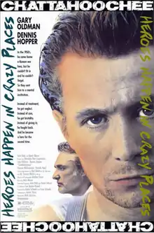 Chattahoochee is a 1989 American drama film directed by Mick Jackson and starring Gary Oldman and Dennis Hopper. The film is based on the real-life experiences of Chris Calhoun in a Florida state mental institution. Calhoun later met James Hicks who wrote the script. It was turned down by several major studios[2] before being accepted by Hemdale Film Corporation, a small British-owned, Los Angeles-based company that also produced Platoon, Hoosiers, The Last Emperor, and Salvador.