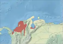 The northern screamer is found across northern Colombia from the Atrato River and Magdalena River valleys east into the Lake Maracaibo area of Venezuela. It inhabits a variety of wet landscapes including swamps, marshes, lagoons, riverbanks, and seasonally flooded river plains.[3]