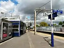 ![]() Platforms 1 and 2, with the footbridge, constructed in 2011, clearly visible in the background. | |