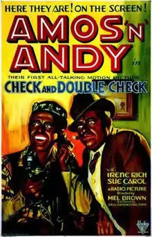 Check and Double Check is a 1930 American pre-Code comedy film produced and released by RKO Radio Pictures, based on the Amos 'n' Andy radio show. The title was derived from a catchphrase associated with the show. Directed by Melville W. Brown, from a screenplay by Bert Kalmar, J. Walter Ruben, and Harry Ruby, it starred Freeman Gosden and Charles Correll in blackface, in the roles of Amos Jones and Andy Brown, respectively, which they had created for the radio show. The film also featured Duke Ellington and his Cotton Club Orchestra.