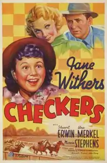 Checkers is a 1937 American drama film directed by H. Bruce Humberstone and written by Robert Chapin, Karen DeWolf, Frank Fenton and Lynn Root. The film stars Jane Withers, Stuart Erwin, Una Merkel, Marvin Stephens, Andrew Tombes and June Carlson. The film was released on December 8, 1937, by 20th Century Fox.[1][2][3]