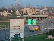 The east town line is marked by New York State Route 78 (Transit Road). New York State Route 240 (Harlem Road) and New York State Route 277 (Union Road) are major north-south routes through the town. New York State Route 33 (Kensington Expressway), Walden Avenue, and William Street access the New York State Thruway, which is also runs north-south through the town, traveling from the Amherst town line in the north, south to the West Seneca town line in the southwest corner of town. New York State Route 130 (Broadway) is an east-west roadway from the Buffalo city line to the Depew village line. Interstate 190, travels in the town from I-90 to Buffalo City Line and beyond into Downtown Buffalo and north to Niagara Falls. U.S. Route 20 (Transit Road) is a north-south roadway that runs concurrently with NY 78 along Cheektowaga's east border with Lancaster, south of Depew. New York State Route 354 (Clinton Street) is an east-west roadway through the extreme southwest corner of town, and provides the southern border with West Seneca.