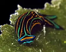 Chelidonura hirundinina is a species of small and colorful aglajid sea slug, a shell-less opisthobranch gastropod mollusk in the family Aglajidae.[1]