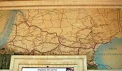 In 1856, the Midi completed its rail line from Bordeaux to Toulouse.[2][3] In 1857, it continued on from Toulouse through Narbonne to Sète.[2] This put it in competition with the Canal du Midi, and on 28 May 1858 the railway took over the lease of the canal.[2][4]