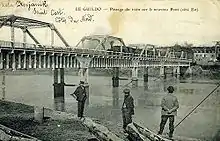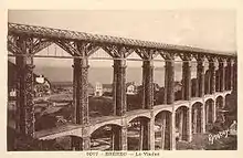 The 20-kilometre (12 mi) line between Paimpol and Tréguier opened on 1 May 1924 and closed on 31 March 1950. There were two major bridges on the line, the Viaduc de Lézardrieux near Trieux (160 metres or 525 feet long and 30 metres or 98 feet 5 inches high) and the Viaduc sur le Jaudy at Tréguier. This latter was destroyed by the Resistance in 1944. Reconstruction started in September 1946 but the central arch collapsed and the work was abandoned. The failure to rebuild the bridge accelerated the closure of the line west of Paimpol.[2]
