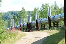 The construction of Ladd Army Airfield starting in 1939, part of a larger effort by the federal government during the New Deal and World War II to install major infrastructure in the territory for the first time, fostered an economic and population boom in Fairbanks which extended beyond the end of the war. In the 1940s the Canol pipeline extended north from Whitehorse for a few years. The Haines - Fairbanks 626 mile long 8" petroleum products pipeline was constructed during the period 1953-55.[14] The presence of the U.S. military has remained strong in Fairbanks. Ladd became Fort Wainwright in 1960; the post was annexed into Fairbanks city limits during the 1980s.